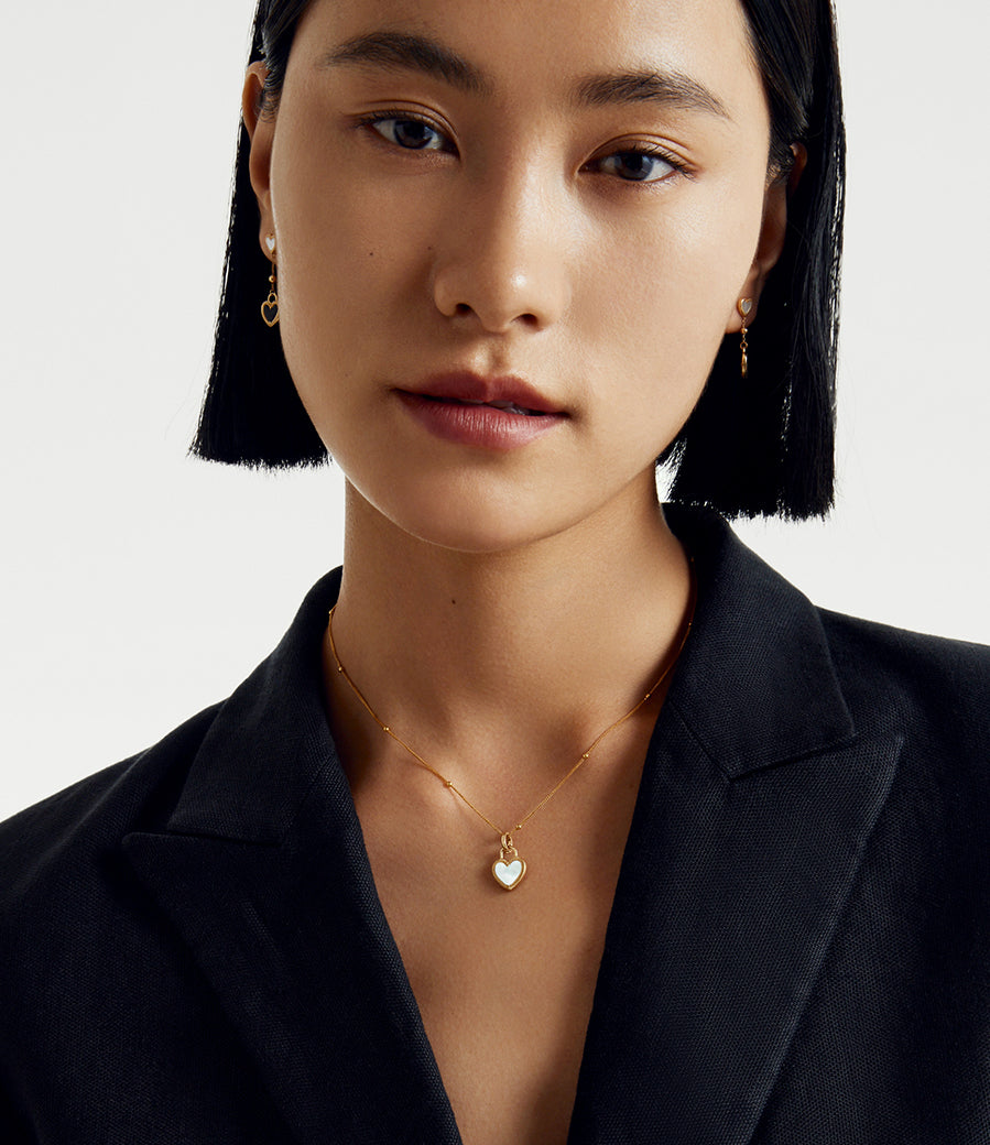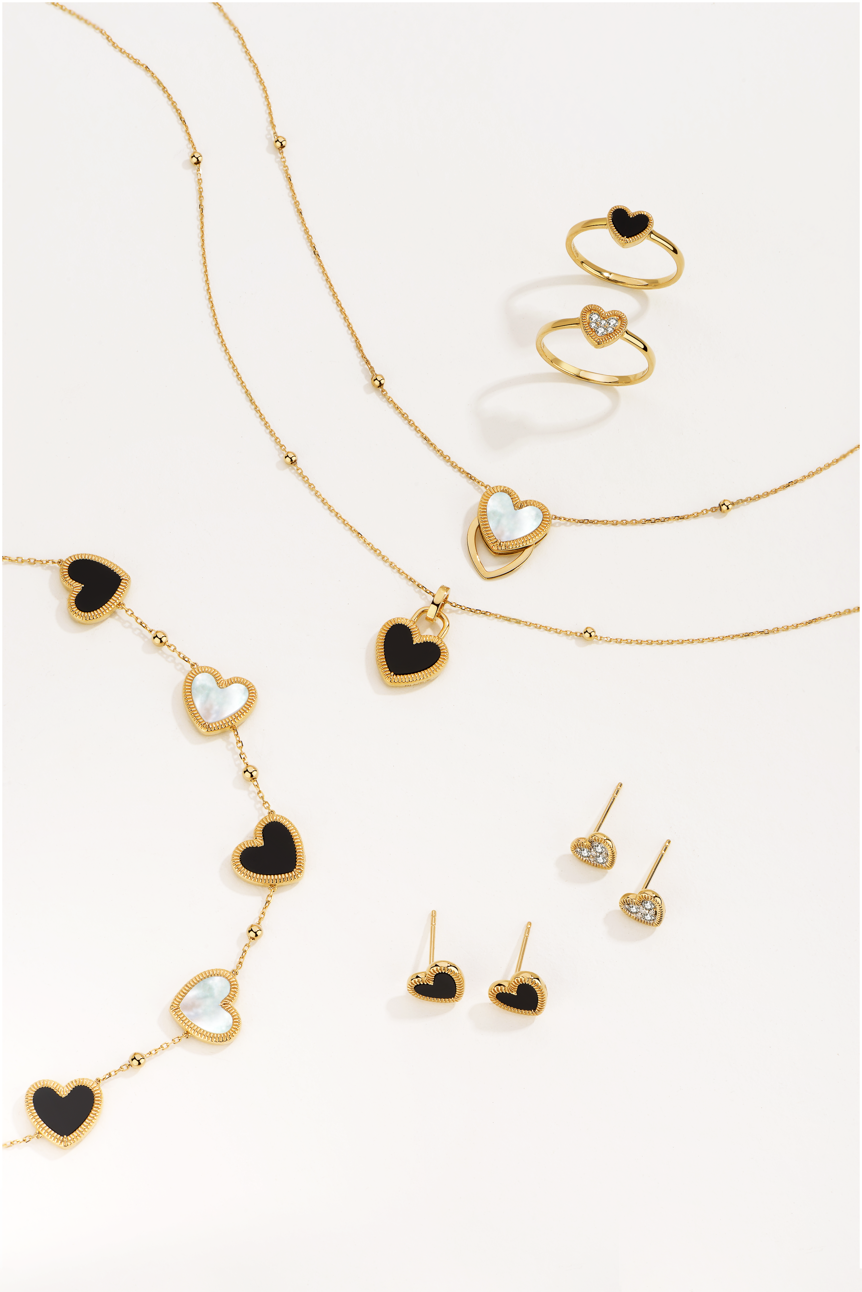 The elegance of duality—introducing the Flip Collection's double-sided heart bracelet. Crafted from 18K solid gold, this versatile piece features a powerful black onyx side and a fearless white mother-of-pearl side, allowing you to embrace both strength and softness in one elegant design.
