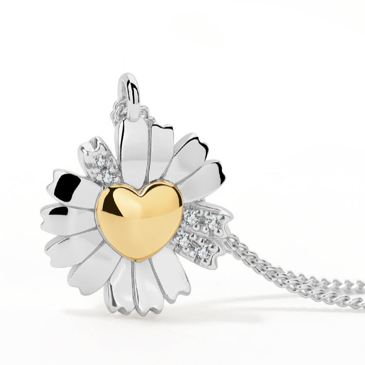 A daisy that glows with soft contrast and thoughtful charm. The Daisy Heart Silver Two-Tone Necklace features a delicately sculpted daisy pendant crafted in 925 sterling silver, accented with a subtle two-tone plating for added warmth and depth.