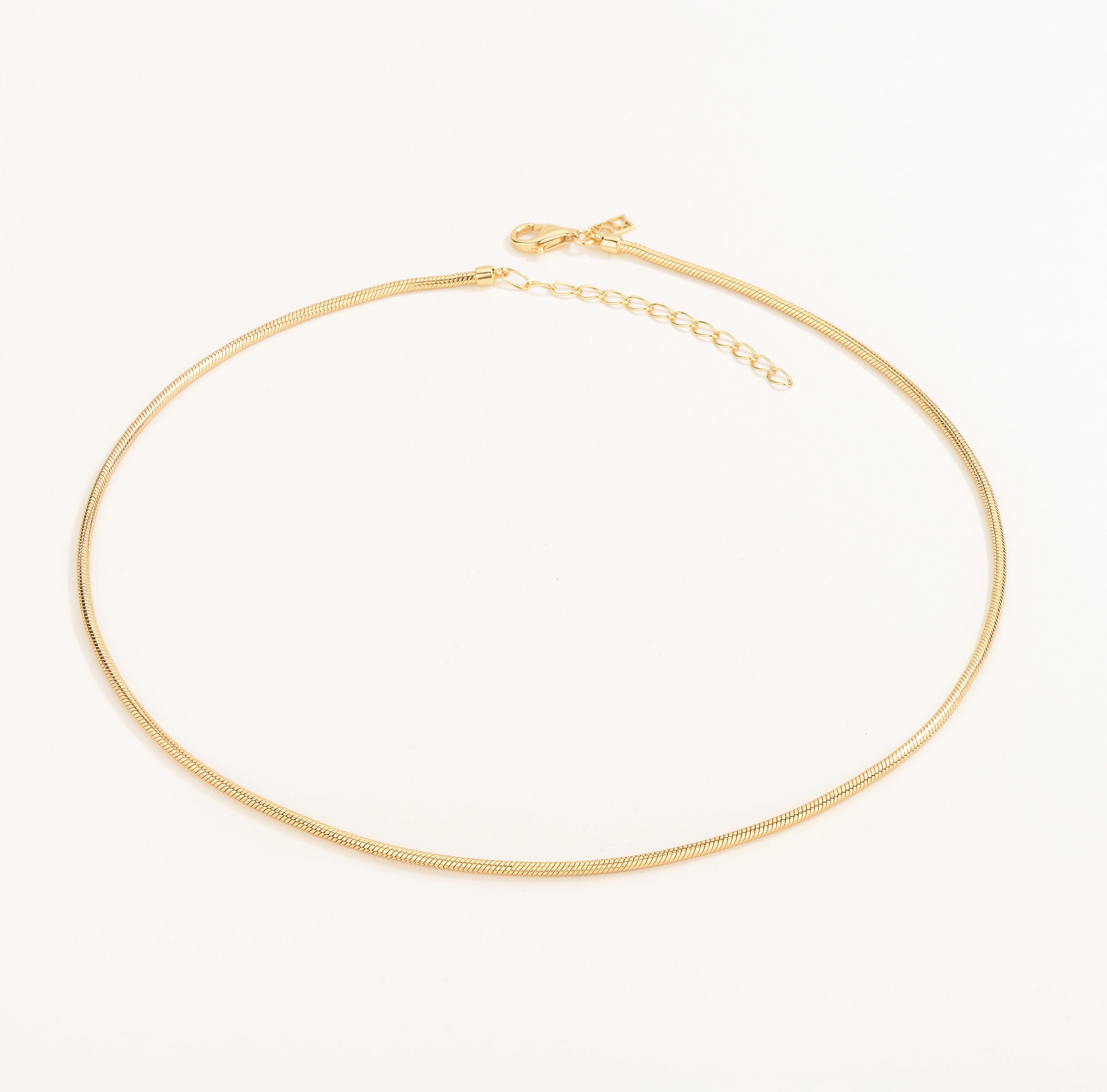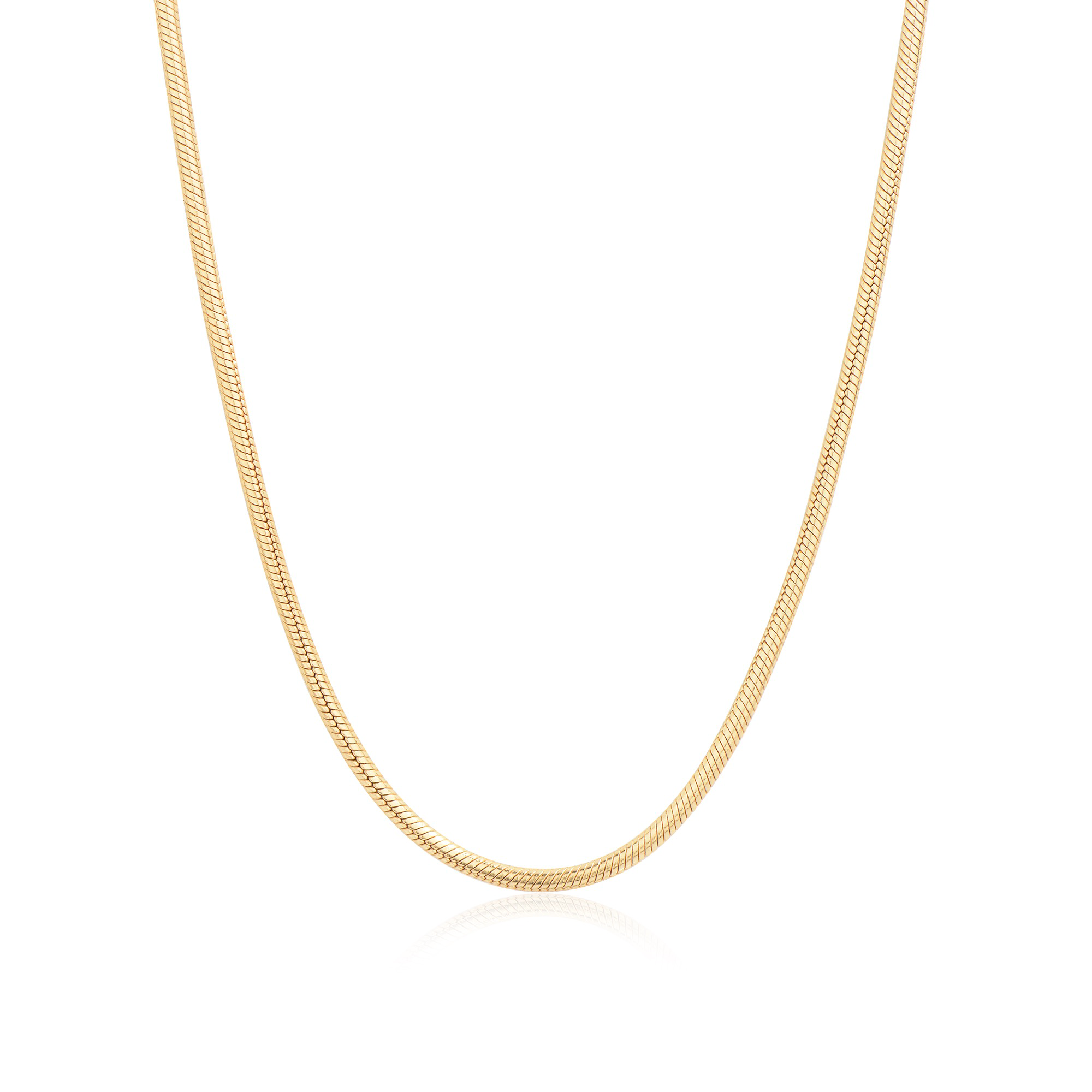A modern essential, the Essential Silver Gold Vermeil Snake Chain Necklace is designed for effortless layering. Its round snake chain design adds a sleek, contemporary touch, making it a versatile staple in any jewelry collection. Crafted in 18ct Gold Vermeil on Sterling Silver, this high-polish chain offers a luxurious yet understated look, perfect for everyday wear.