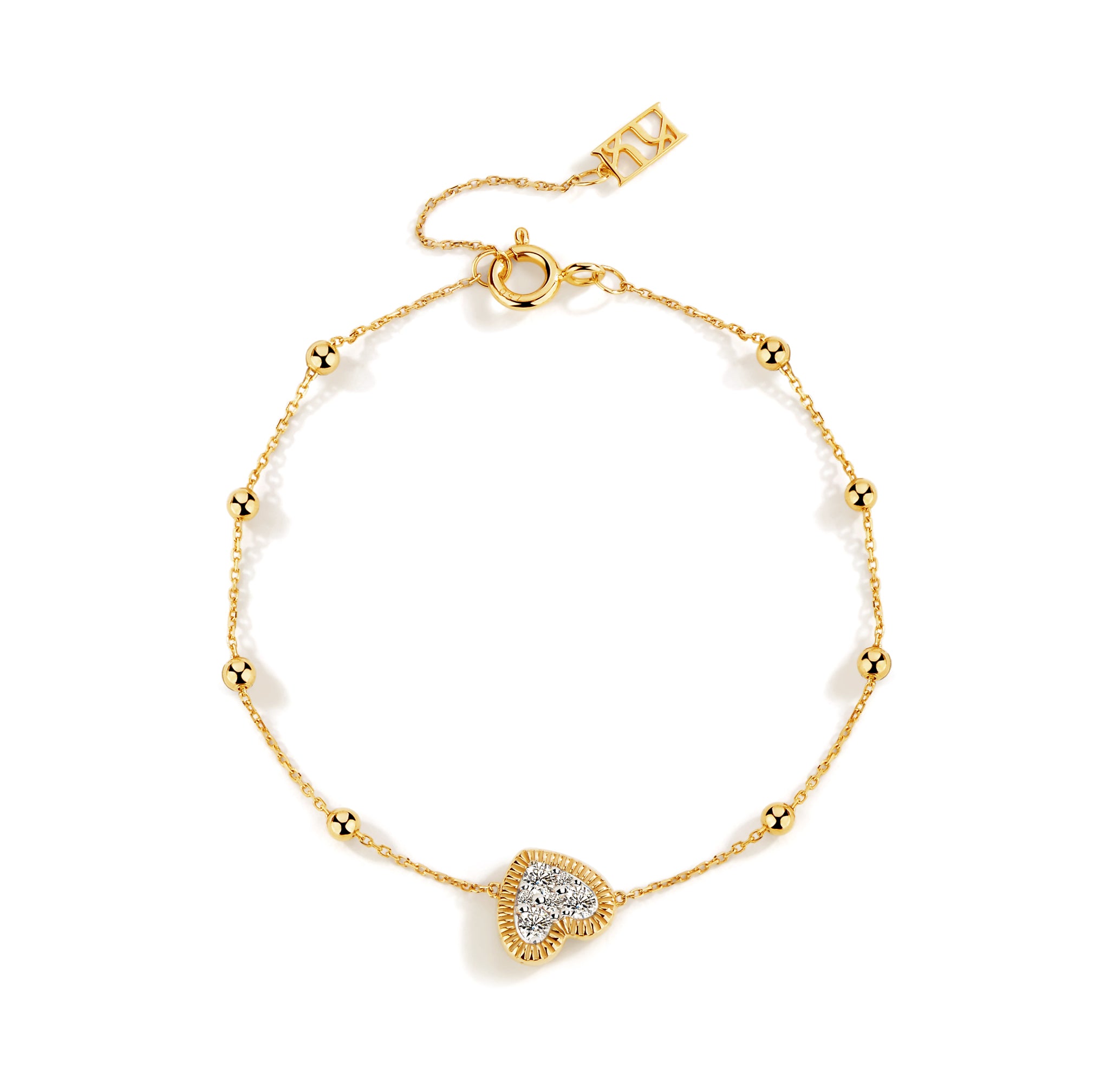 The elegance of duality—introducing the Flip Collection’s Diamond Double-Sided Single Heart Bracelet. Crafted from 18K solid gold, this versatile piece features a reversible heart charm, adorned with six natural diamonds for a touch of brilliance. The powerful black onyx side symbolizes resilience, while the fearless white mother-of-pearl side represents purity and wisdom. A timeless piece that seamlessly blends strength and elegance.