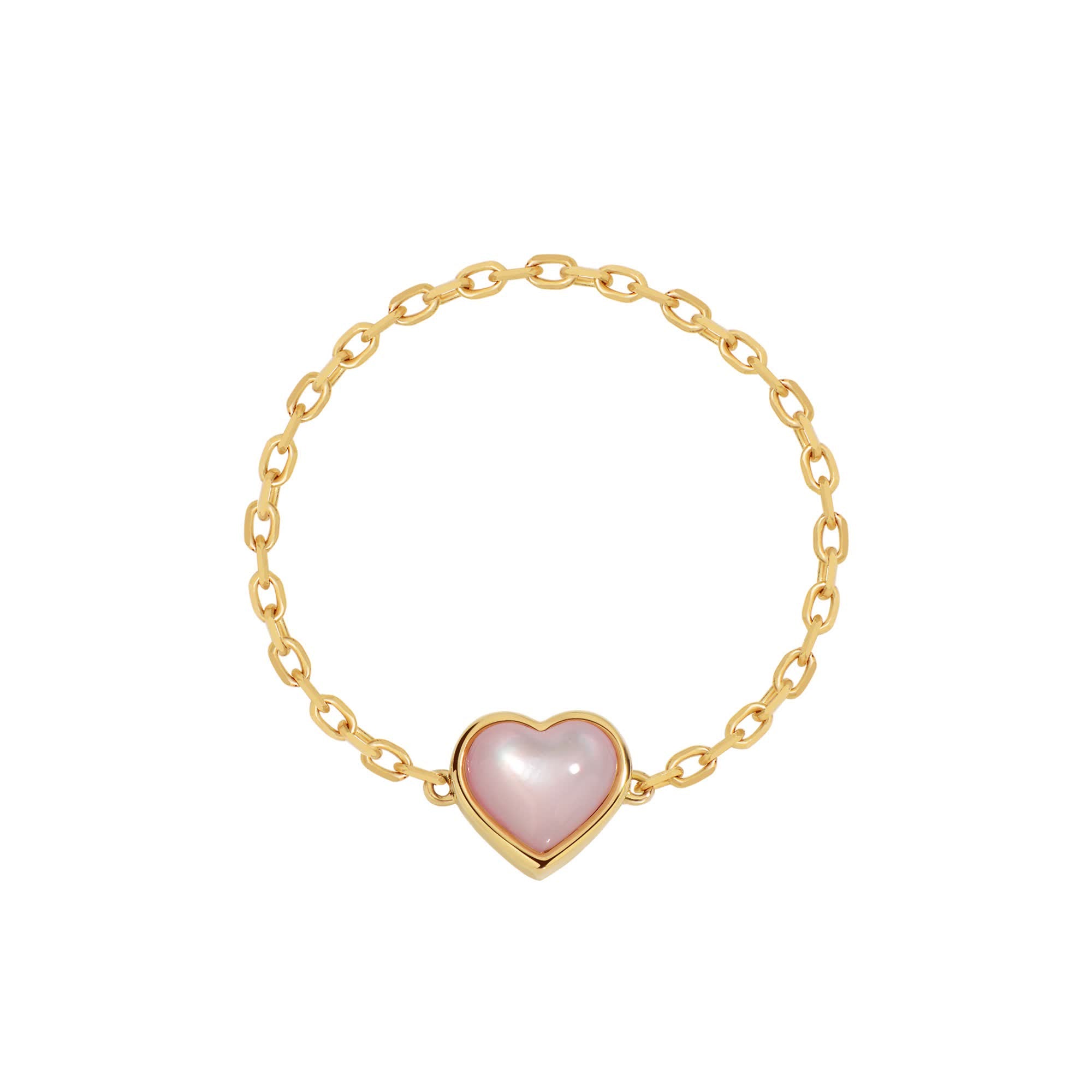 The pink mother of pearl heart glows softly. It’s romantic, delicate, and layers beautifully.
