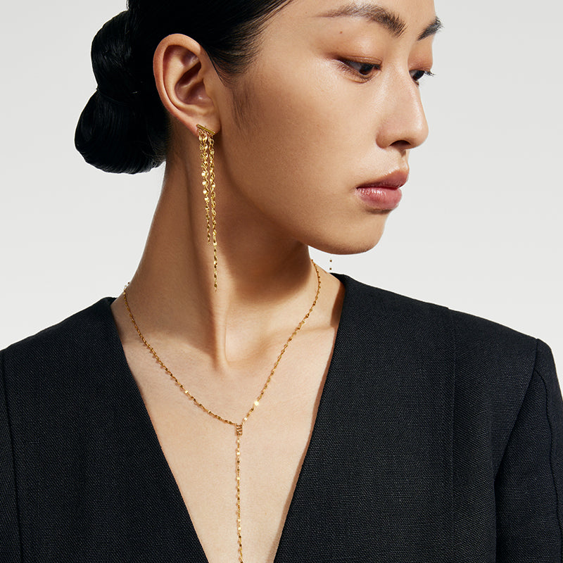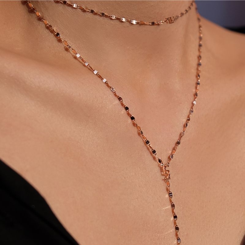 Get your shine on with this elegant and sophisticated Y-shape chain, beautifully handcrafted in solid 18K gold. With its high-polish finish, this versatile piece adds a delicate yet striking touch to any look. Available in Yellow Gold and Rose Gold options.