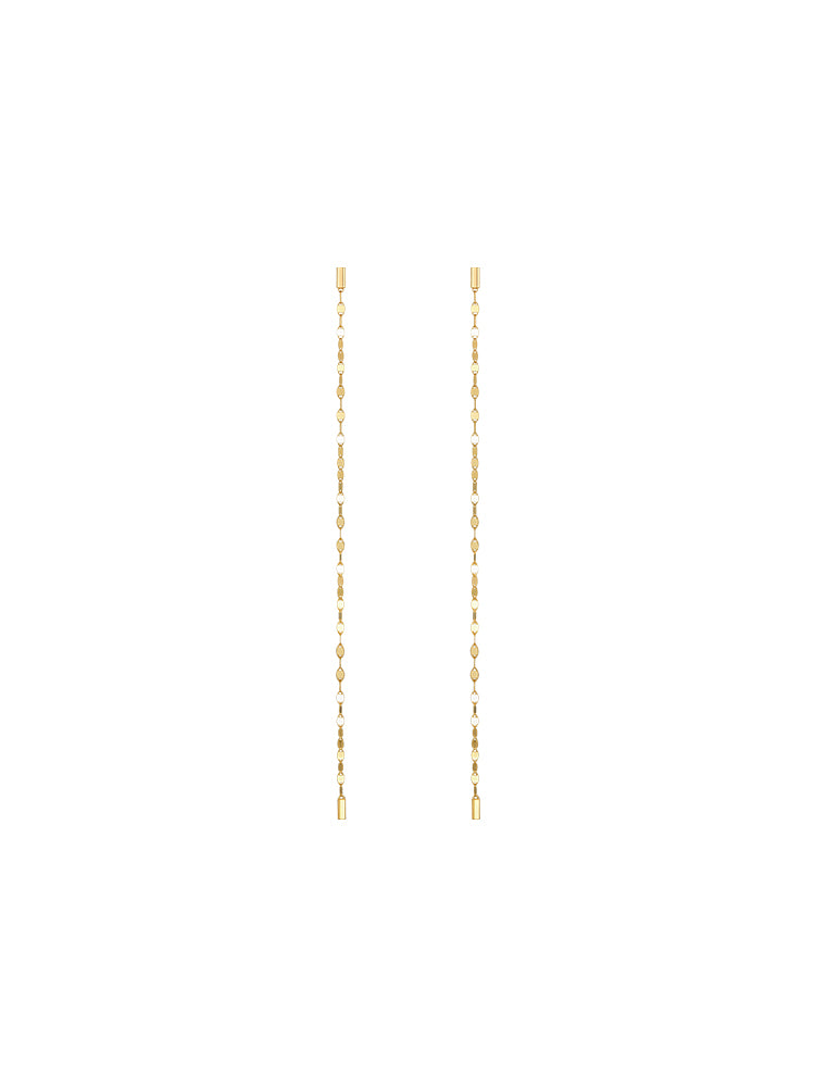 Get your shine on with this elegant and sophisticated pair of earrings, beautifully handcrafted in solid 14K gold. Featuring a high-polish finish, these timeless earrings bring effortless radiance to any look. The stud design with a delicate dangling chain adds movement and elegance, making them perfect for both everyday wear and special occasions. Available in Yellow Gold options.