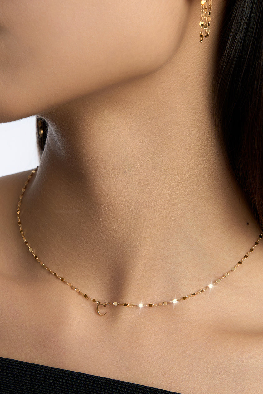 Get your shine on with this elegant and sophisticated choker-length chain necklace, beautifully handcrafted in solid 14K/ 18K gold. Its sleek silhouette and high-polish finish make it a subtle yet powerful piece, perfect for layering or standing alone. As part of the Shine Collection, this necklace also allows for tailor-made personalization with your chosen alphabet, making it uniquely yours.