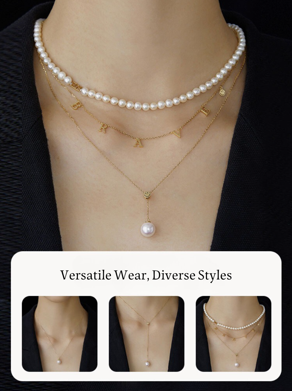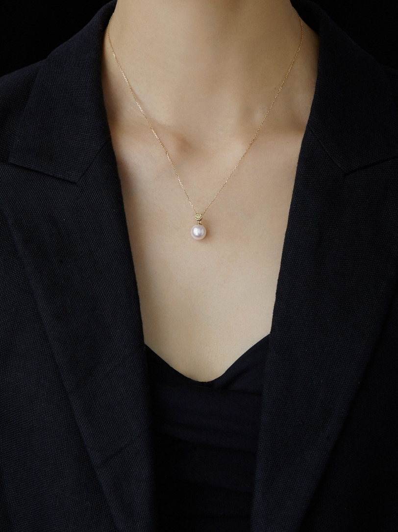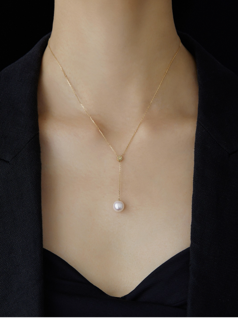Introducing the KKLUExSMILEY® Collection, a co-branded series that inspires women to embrace life with a smiling attitude. This elegant Y-chain necklace features a sliding Smiley bead, allowing for versatile styling. Highlighted by a lustrous 7.5-8mm Akoya pearl, this piece blends playfulness with timeless sophistication.