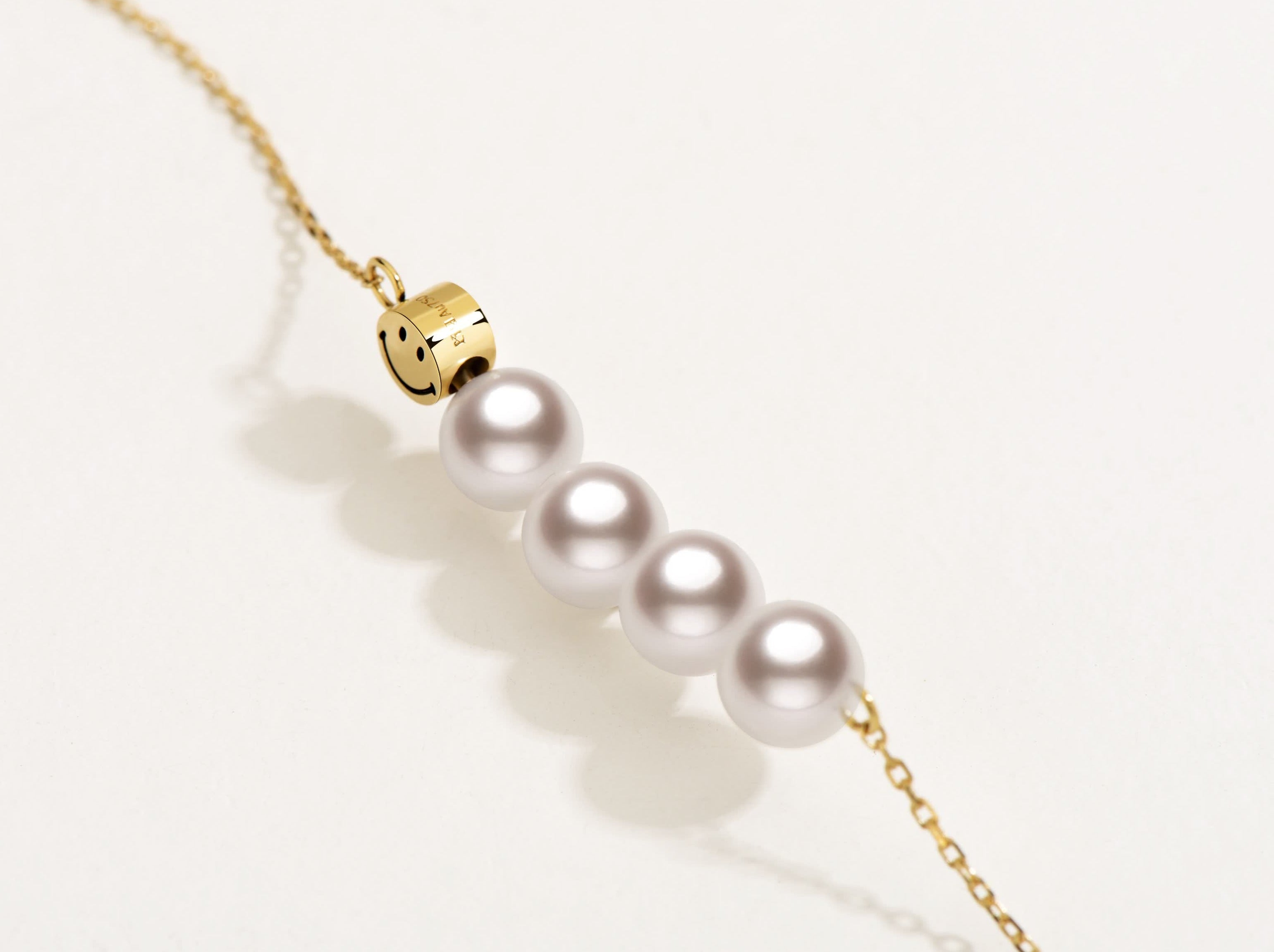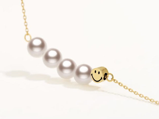 Introducing the KKLUExSMILEY® Collection, a co-branded series that embraces joy and positivity. This U-shaped necklace features four lustrous Akoya pearls and a signature Smiley bead, creating a harmonious balance of playfulness and elegance. Designed for a modern yet timeless look, this piece adds a radiant touch to any outfit.
