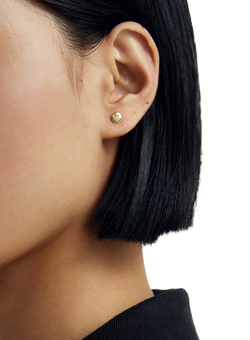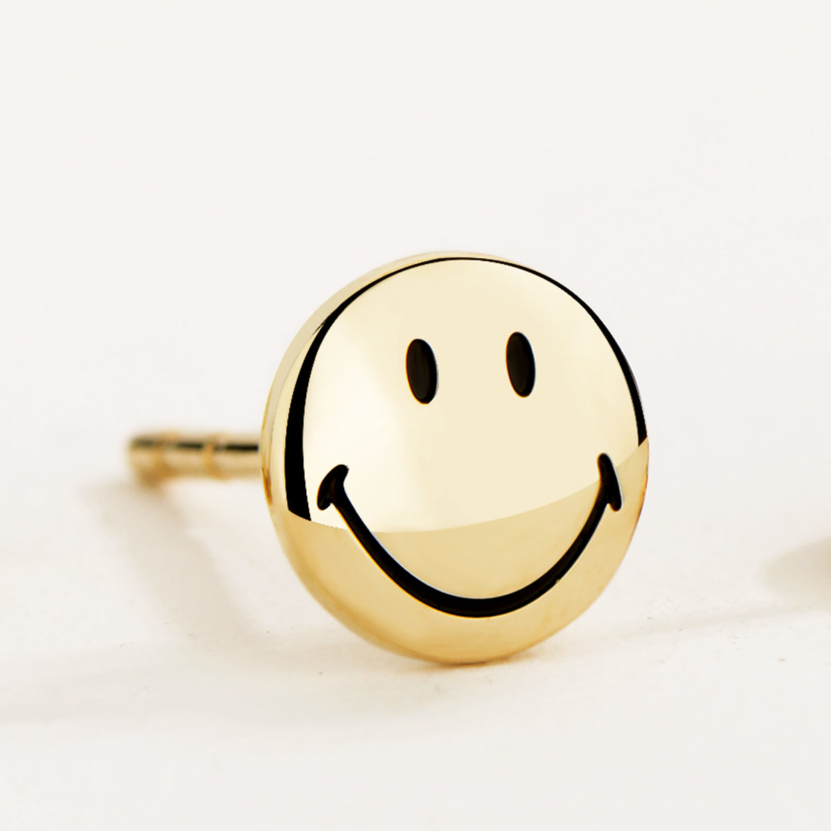A playful twist on timeless elegance where minimalist luxury meets the iconic SMILEY® symbol. Featuring antique Smiley details in solid 18K gold, these earrings bring a touch of joy and positivity to your everyday look.