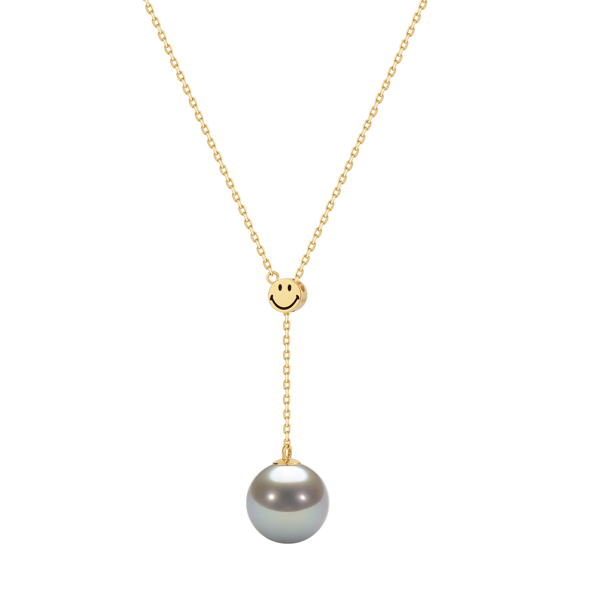 Introducing the KKLUExSMILEY® Collection, a co-branded series that inspires women to embrace life with a smiling attitude. This elegant Y-chain necklace features a sliding Smiley bead, allowing for versatile styling. Highlighted by a lustrous 7.5-8mm Akoya pearl, this piece blends playfulness with timeless sophistication.