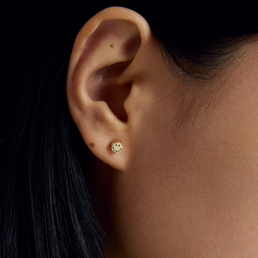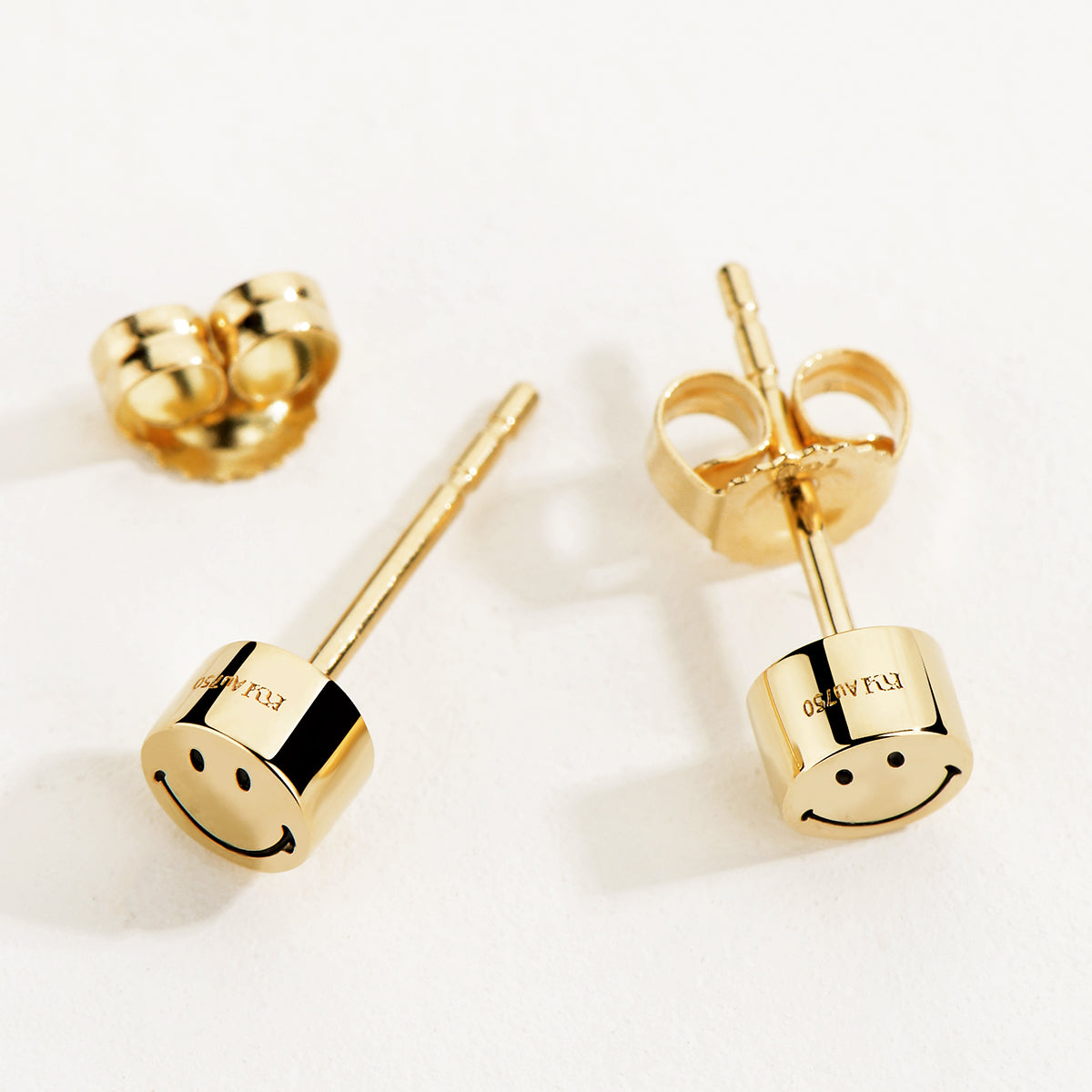 A playful twist on timeless elegance where minimalist luxury meets the iconic SMILEY® symbol. Featuring antique Smiley details in solid 18K gold, these earrings bring a touch of joy and positivity to your everyday look.