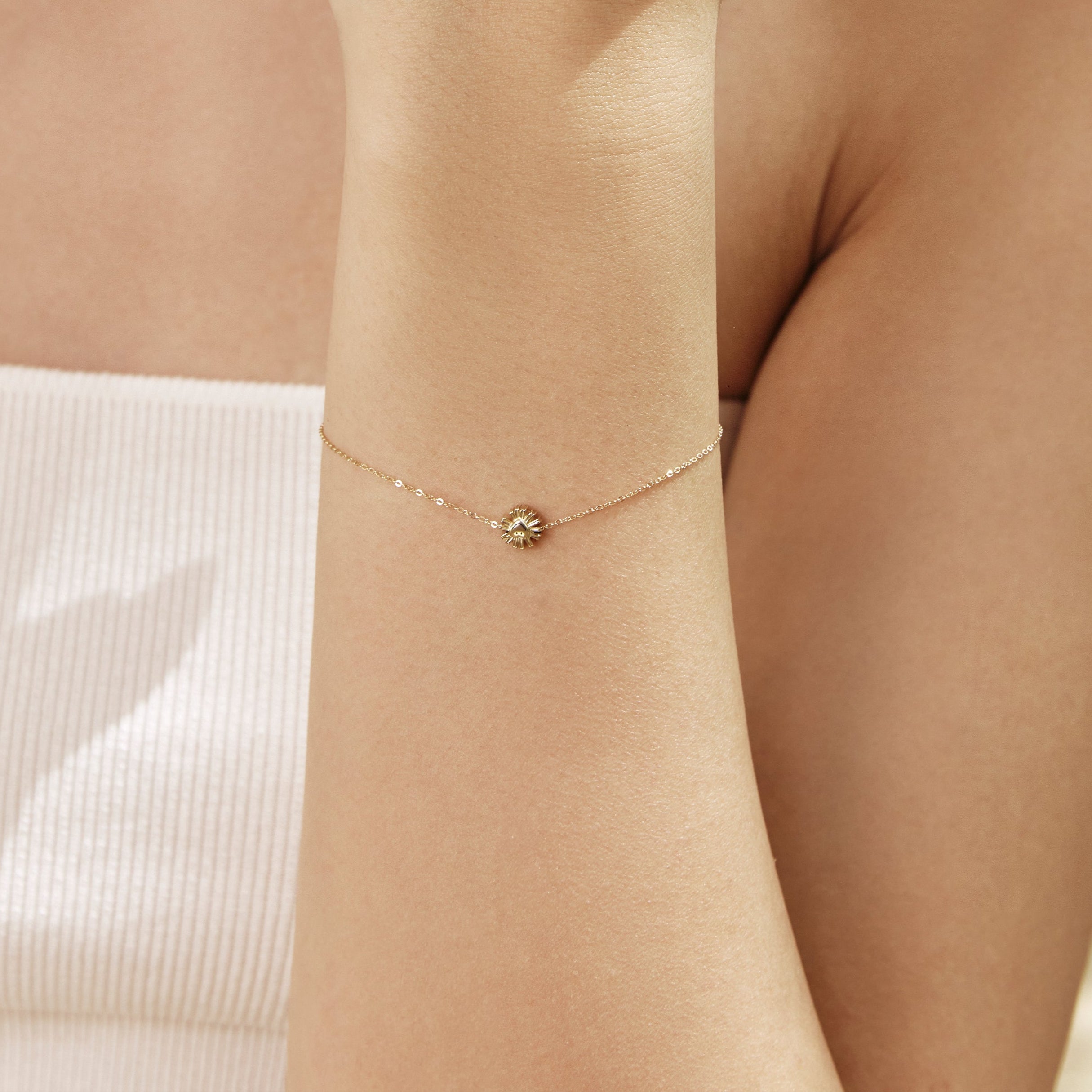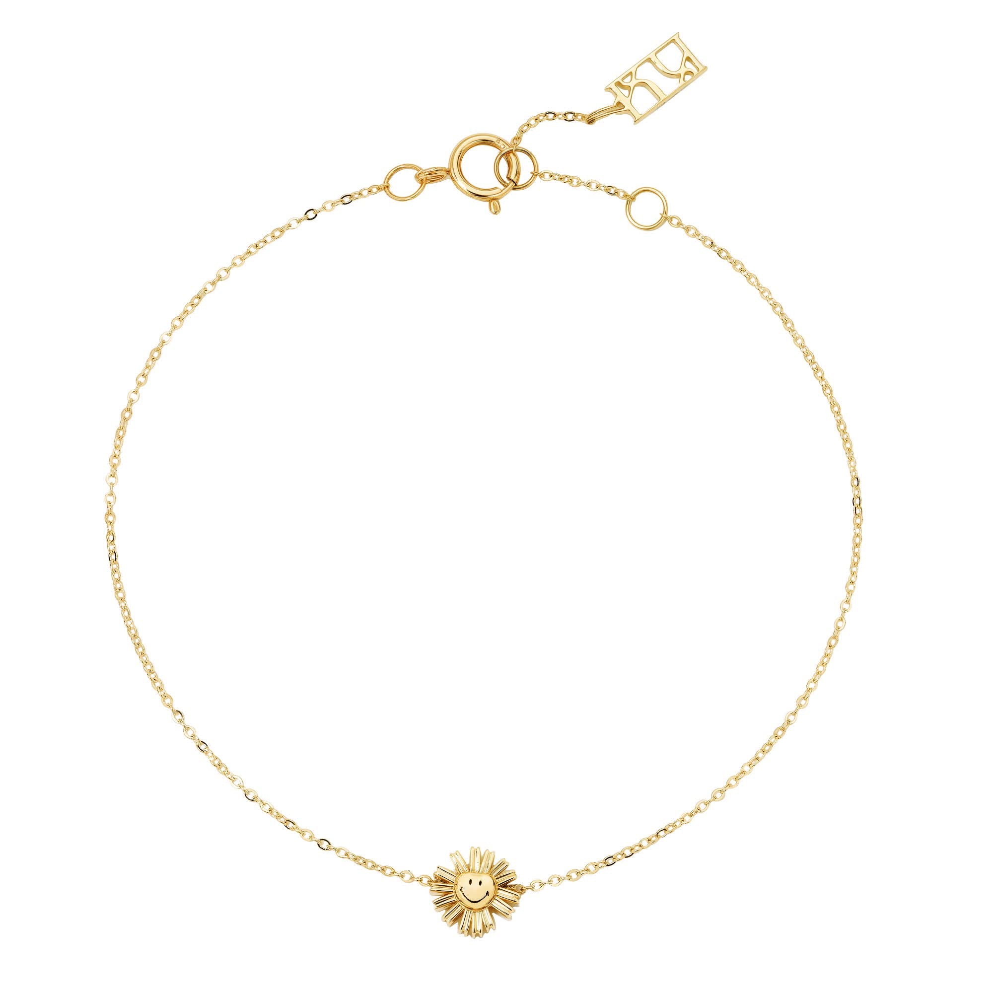 From the 2025 SMILEY® × KKLUE collaboration, the Daisy Heart Sliding Bracelet features a heart-shaped daisy charm in solid 14K yellow gold, paired with a delicate Smiley face accent. With a silicone bead core, the charm slides freely along the chain—designed for effortless, everyday wear with a playful twist.