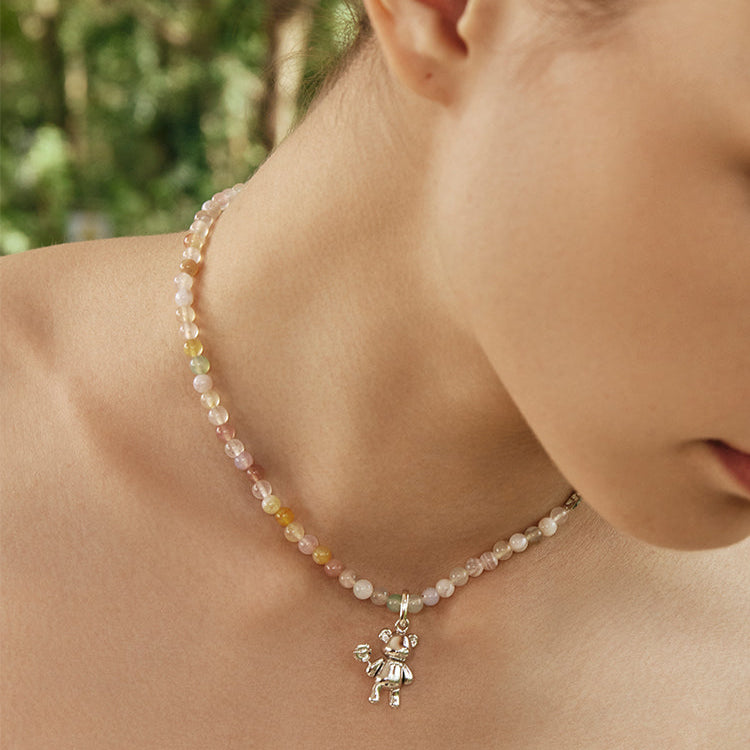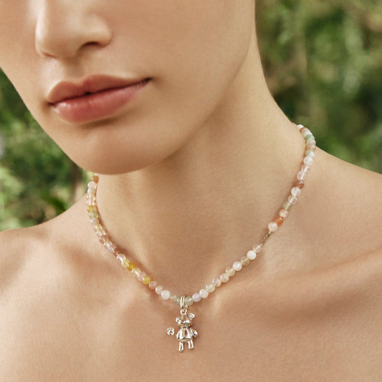 This limited edition crossover necklace unites three beloved elements—Smiley®, our iconic Teddy, and the signature Daisy Heart motif. Crafted in 925 sterling silver and paired with warm-hued Yanyuan agate beads, this joyful character holds a tiny smiley daisy heart charm in its movable arms—ready to gift you a smile, every day.