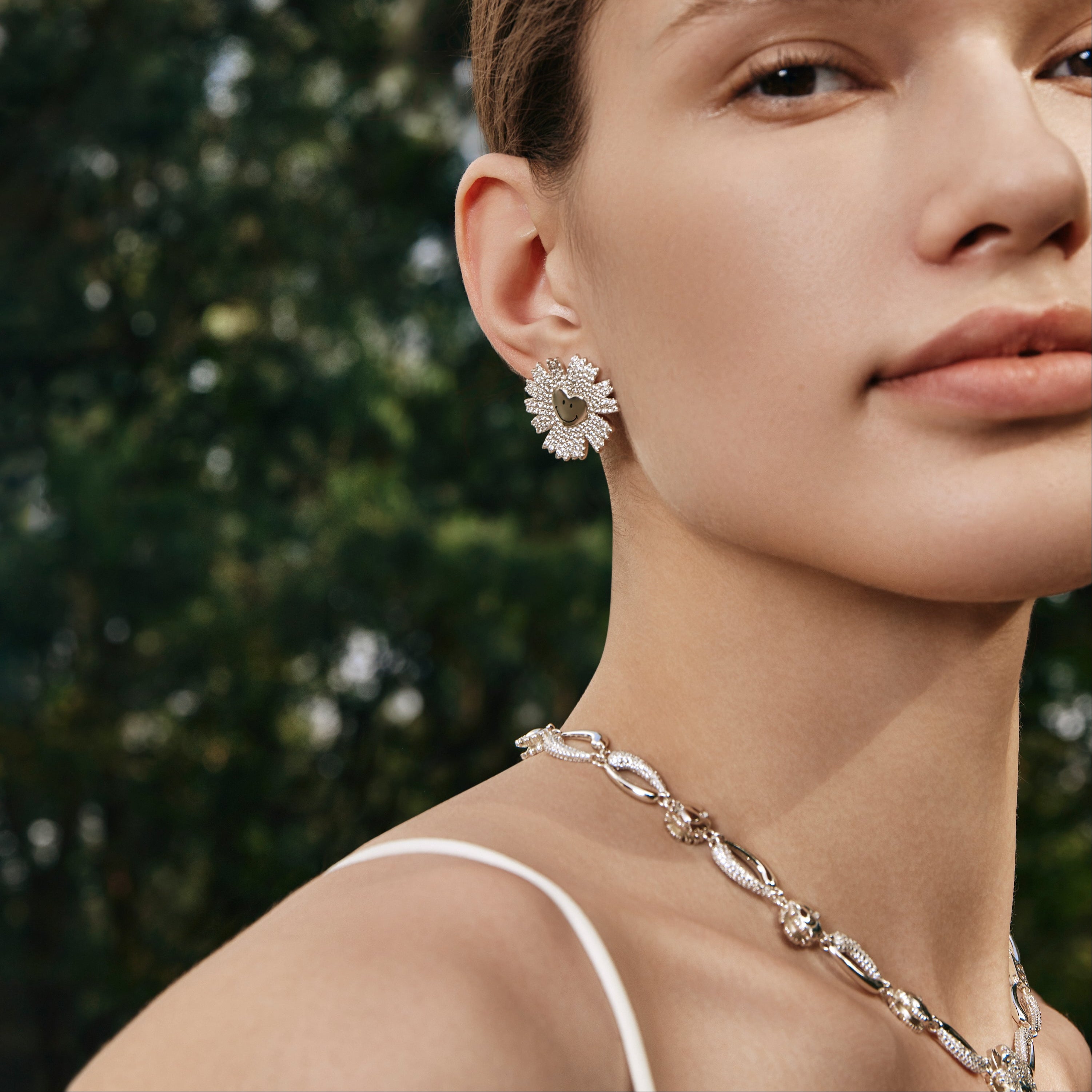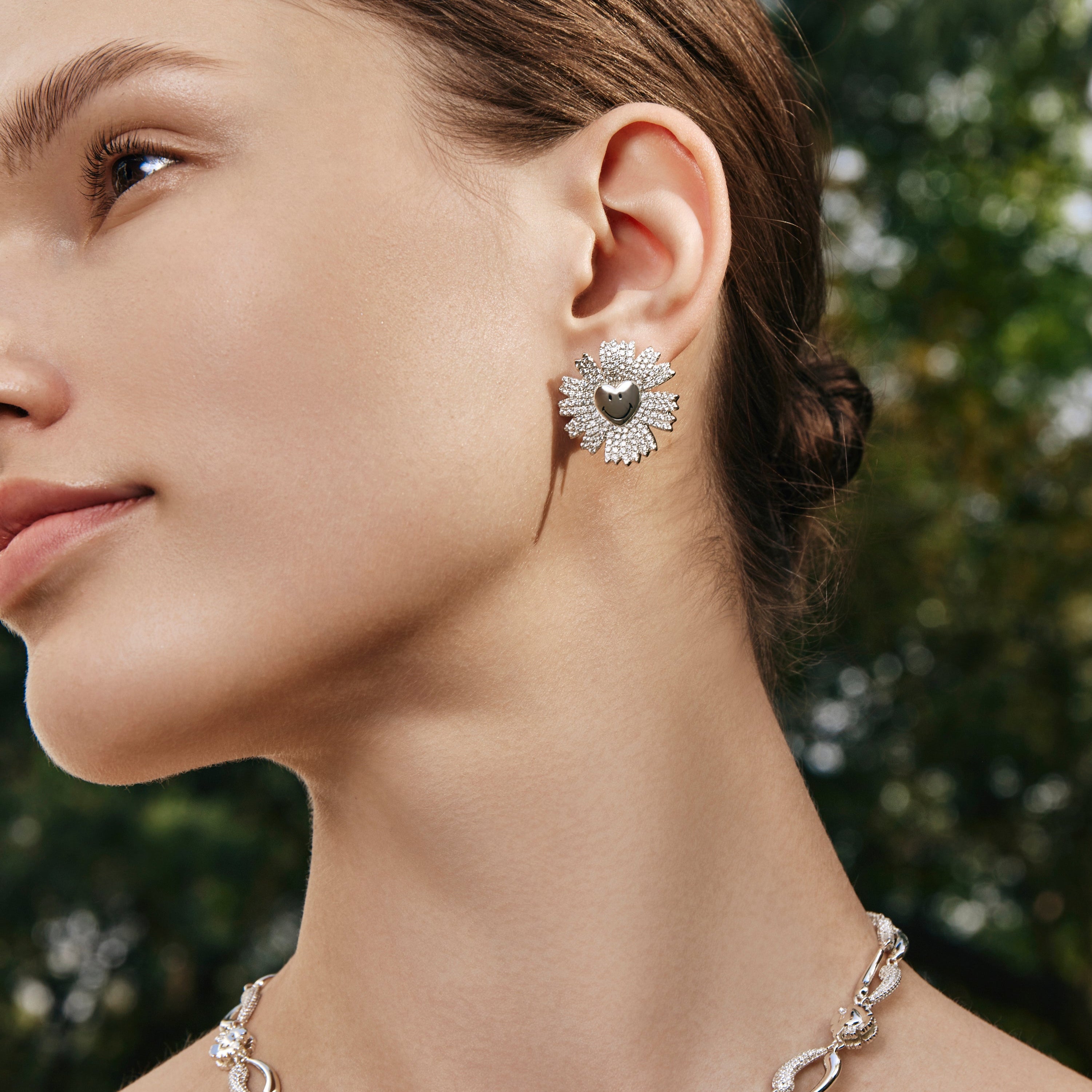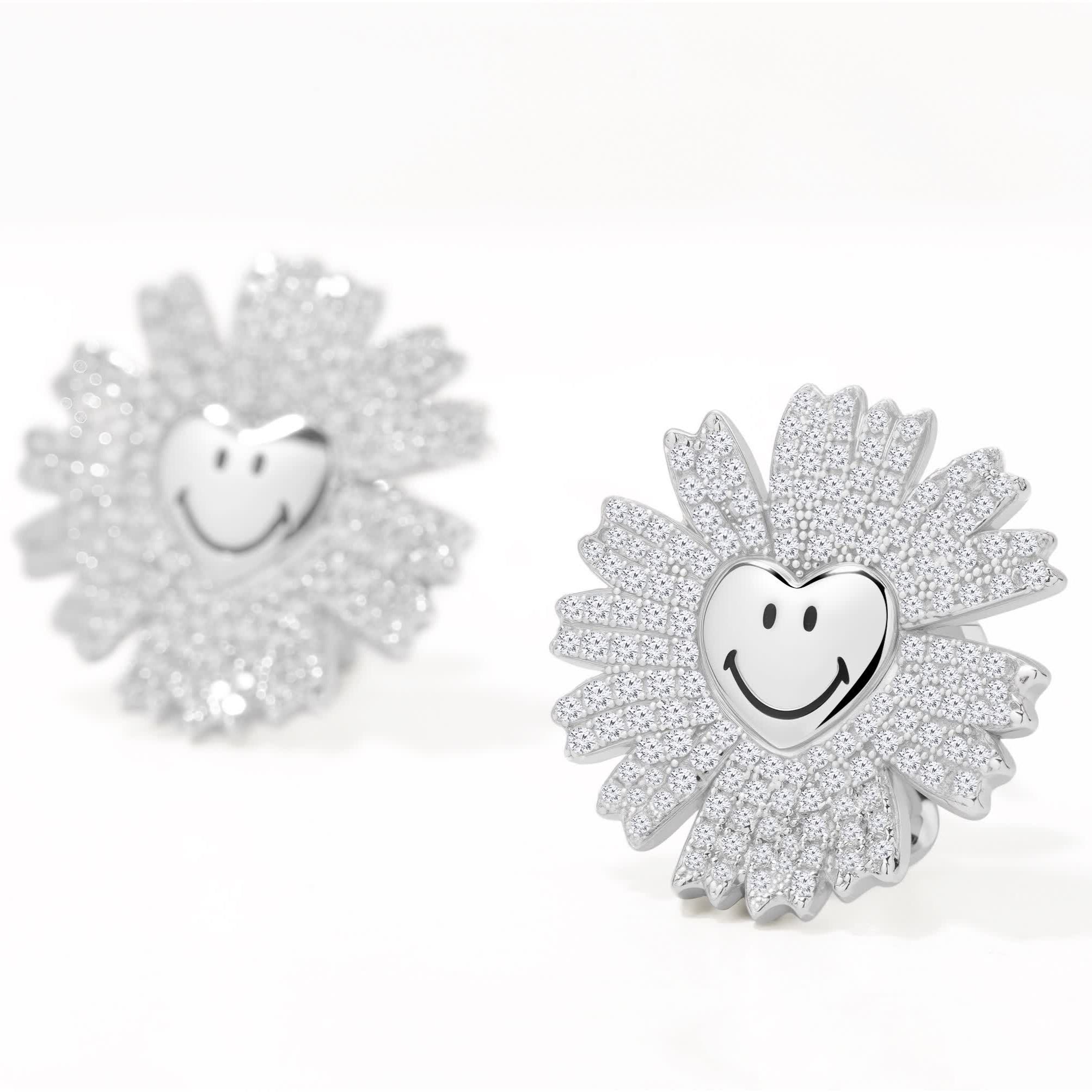 Part of the elevated SMILEY® × KKLUE 2025 collection, the Daisy Heart Silver Luxury Stud Earrings are crafted in 925 sterling silver with a grand 25 mm daisy silhouette and elegant high-polish finish. A custom-designed heart-shaped earring back offers both security and symbolism, echoing the joyful theme of the collection.