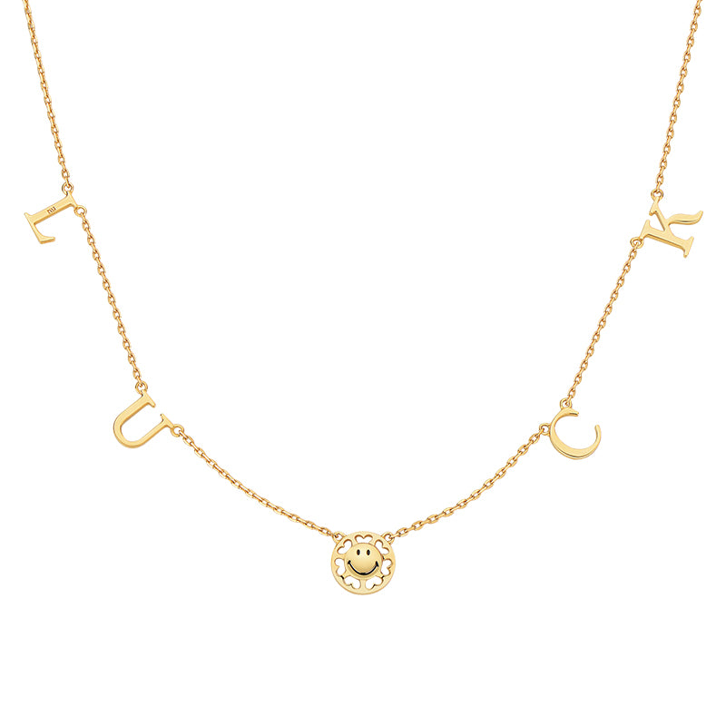 A bold statement of joy and individuality, the Smiley Moment Letter Gold Necklace blends Smiley details with personalized elegance. Crafted in solid 18K gold, this nameplate design offers a custom touch, making it truly one-of-a-kind.