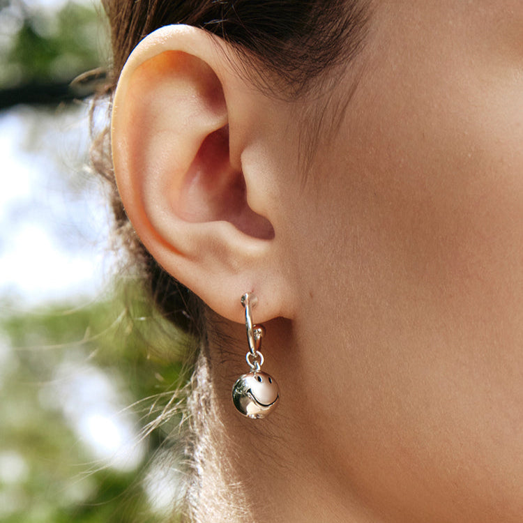 From the Smiley® × KKLUE collection, the Silver Ball Earrings reinterpret classic half-hoop studs with a joyful twist. Featuring a polished 10 mm smiley-inspired sphere and smooth 14 mm half-hoop curve, these earrings add sculptural volume to your daily style—playful yet effortlessly refined.