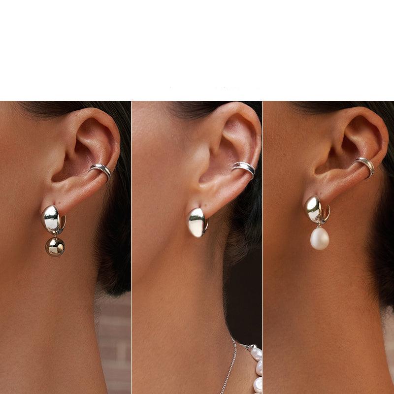 Features: Convertible design – Wear as a classic hoop, with the silver bead, or with the baroque pearl