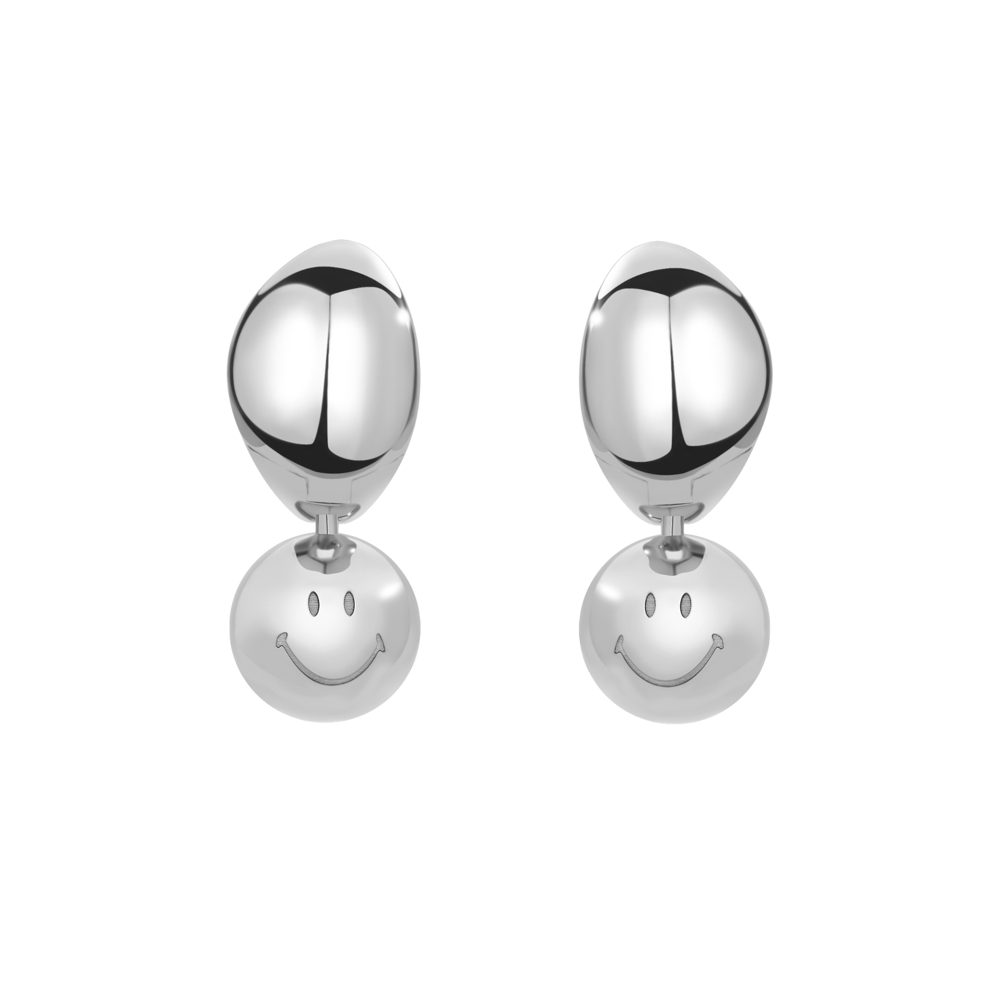 Part of the KKLUExSMILEY® Future Positive Collection, the Smiley Silver Charm Switch Hoop Earrings offer versatile styling with a playful twist. Designed for customization, these hoops can be worn with or without the detachable silver bead or switched to a baroque pearl charm, making them a perfect blend of modern elegance and everyday adaptability.