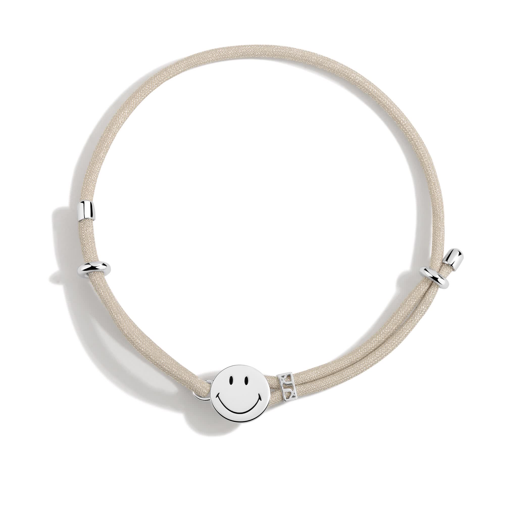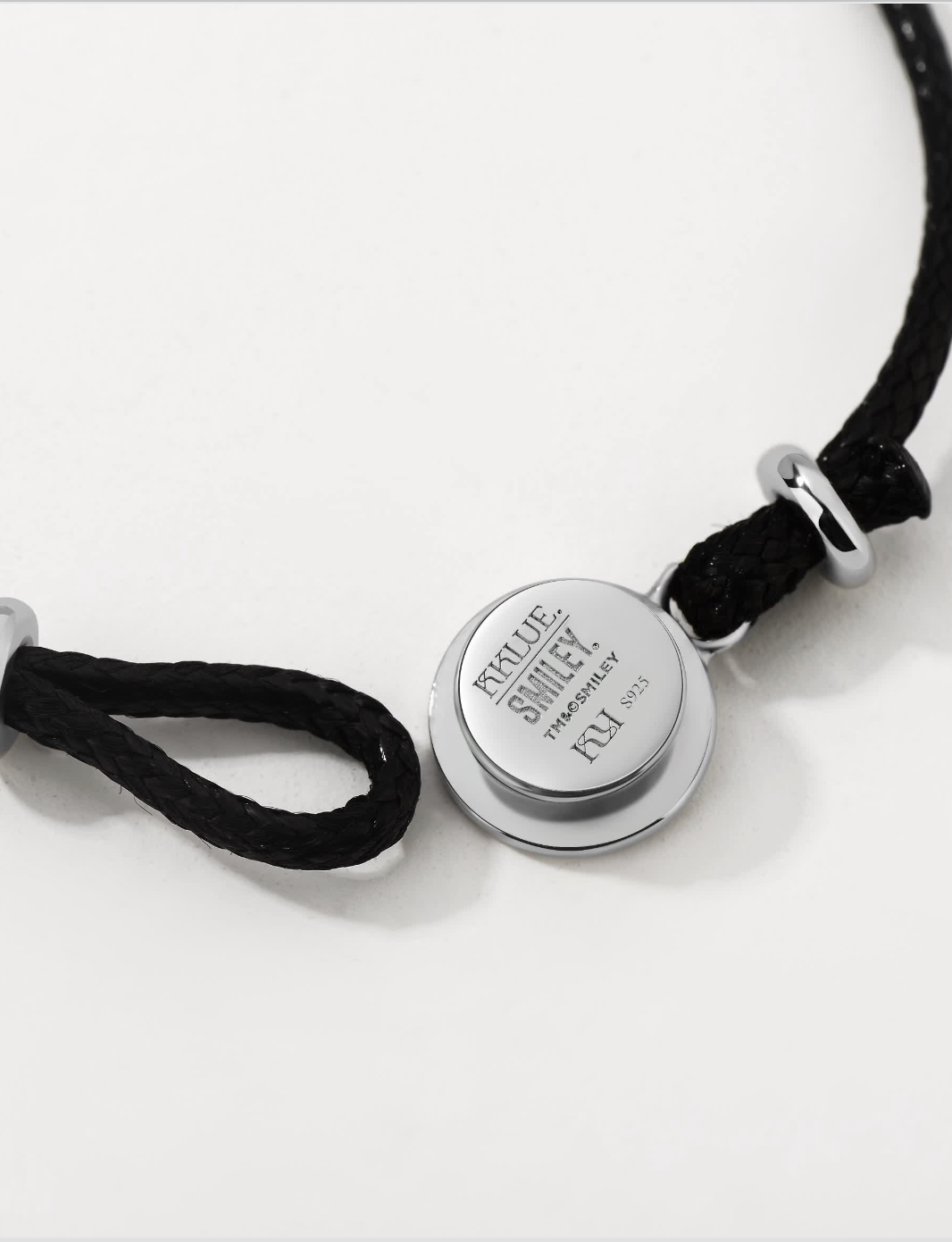 The Smiley Silver Colour String Bracelet, also known as the Smiley Together Band, is a gender-neutral friendship bracelet crafted from recycled sterling silver and A-Class baby-safe fiber cord. Designed for simplicity and versatility, its adjustable design accommodates wrist sizes up to 27 cm, making it perfect for everyday wear. A symbol of connection and positivity, this bracelet is a meaningful piece to wear alone or share with loved ones.