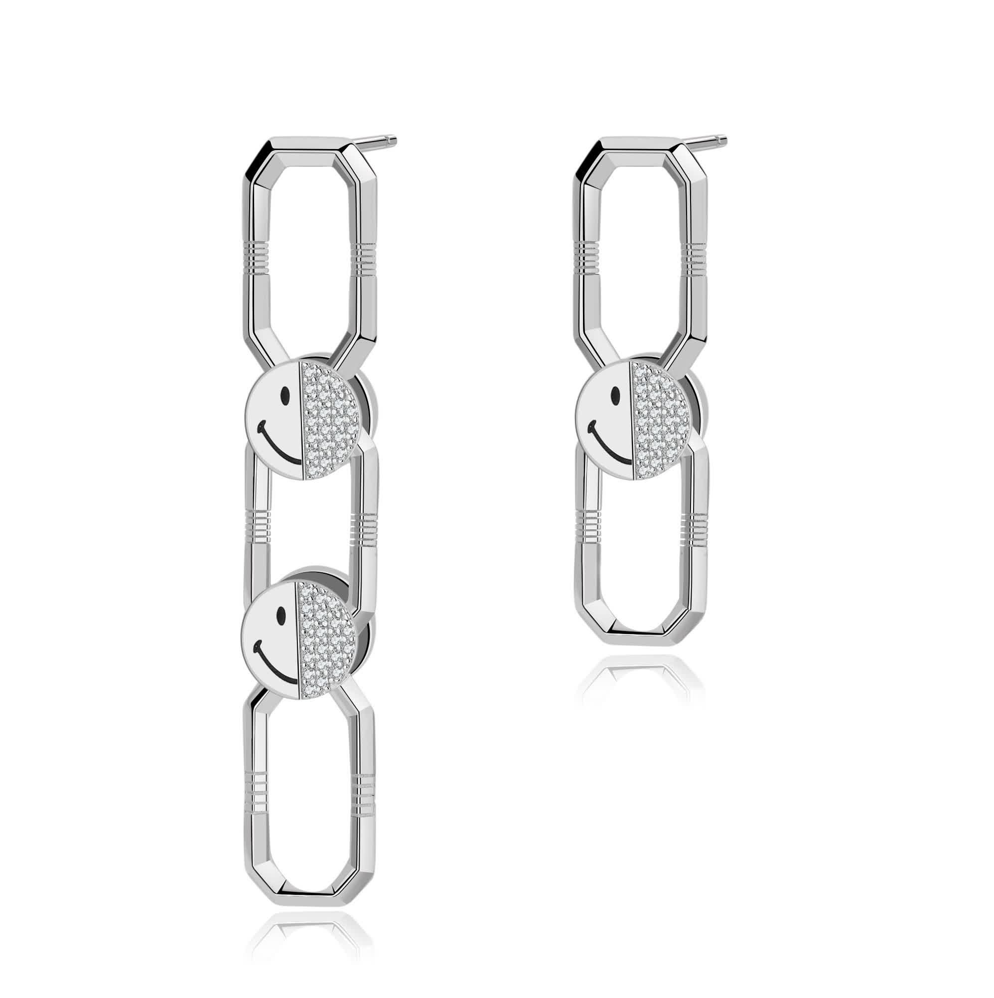 Designed for versatility and limitless styling, the Smiley Silver Elio Detachable Link Earrings allow you to customize your look effortlessly. Crafted from recycled sterling silver, each earring features meticulously detailed Smiley face links, with hand-set cubic zirconia for added sparkle. Wear them as single, double, or triple-link earrings to match your mood and style.
