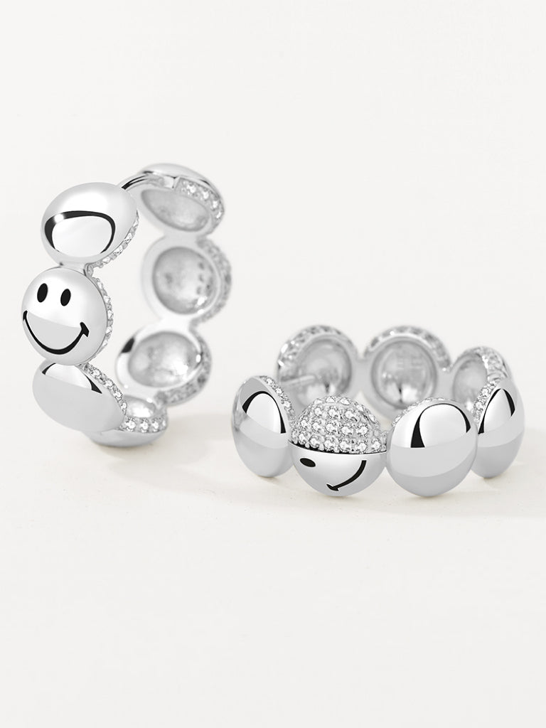 A playful yet elegant statement, the Smiley Silver Flower Earrings feature a delicate floral design crafted from recycled sterling silver. Accented with hand-set cubic zirconia, these earrings add a touch of sparkle while maintaining a lightweight, comfortable fit. Designed with a hinge closure, they offer both security and ease of wear for everyday styling.