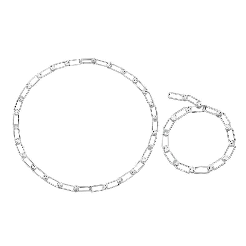 A bold and versatile statement, the Silver Oliver Smiley Link Set combines the signature Oliver Smiley Link Necklace and Bracelet for a cohesive, modern look. Crafted from recycled sterling silver, this set features Smiley face details seamlessly integrated into a structured link chain, offering a playful yet sophisticated aesthetic. With a tailor-made closure, this set allows for an adjustable fit and effortless styling.