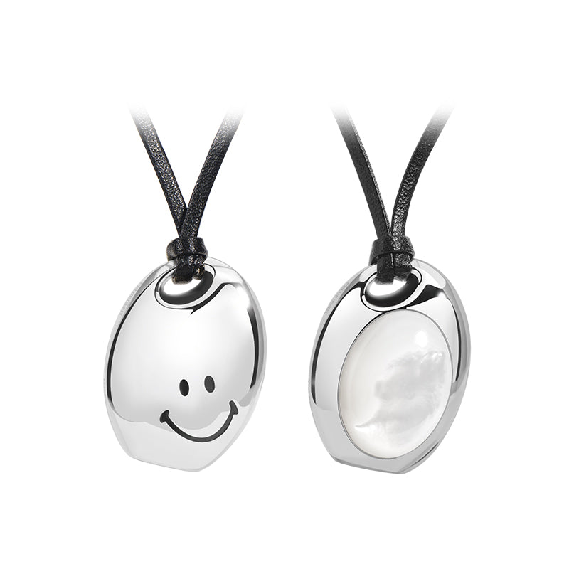 The Smiley Silver Oval Pendant Cord Locket Necklace is a modern keepsake, designed to symbolize positivity, connection, and personal meaning. Crafted in sterling silver, this double-sided locket offers a choice between Mother of Pearl or polished silver, allowing for versatile styling. Paired with a 100cm adjustable cord, this piece is minimal yet bold, perfect for layering or making a statement on its own.