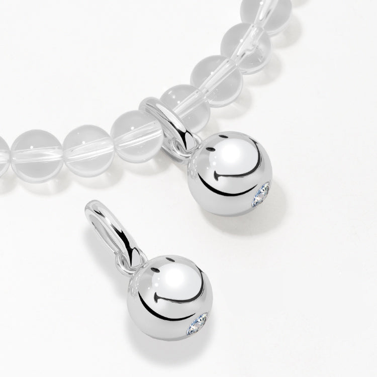 Featuring the iconic Smiley® face, this classic pendant necklace blends joyful design with effortless elegance. Crafted in 925 sterling silver, the signature smiley ball pendant is paired with white crystal or prehnite beads, creating a refined sparkle for everyday positivity.