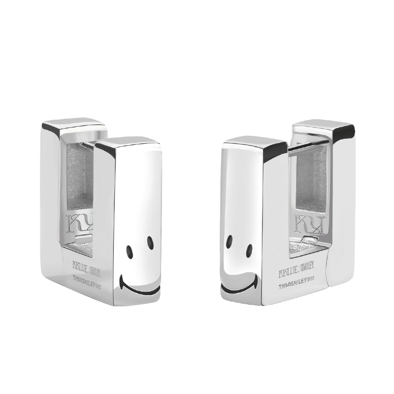 The Smiley Silver Square Hoops combine sharp minimal lines with a raw, expressive Smiley design, creating a bold yet versatile statement. With a reversible structure, these hoops offer multiple styling possibilities, making them a perfect everyday essential.