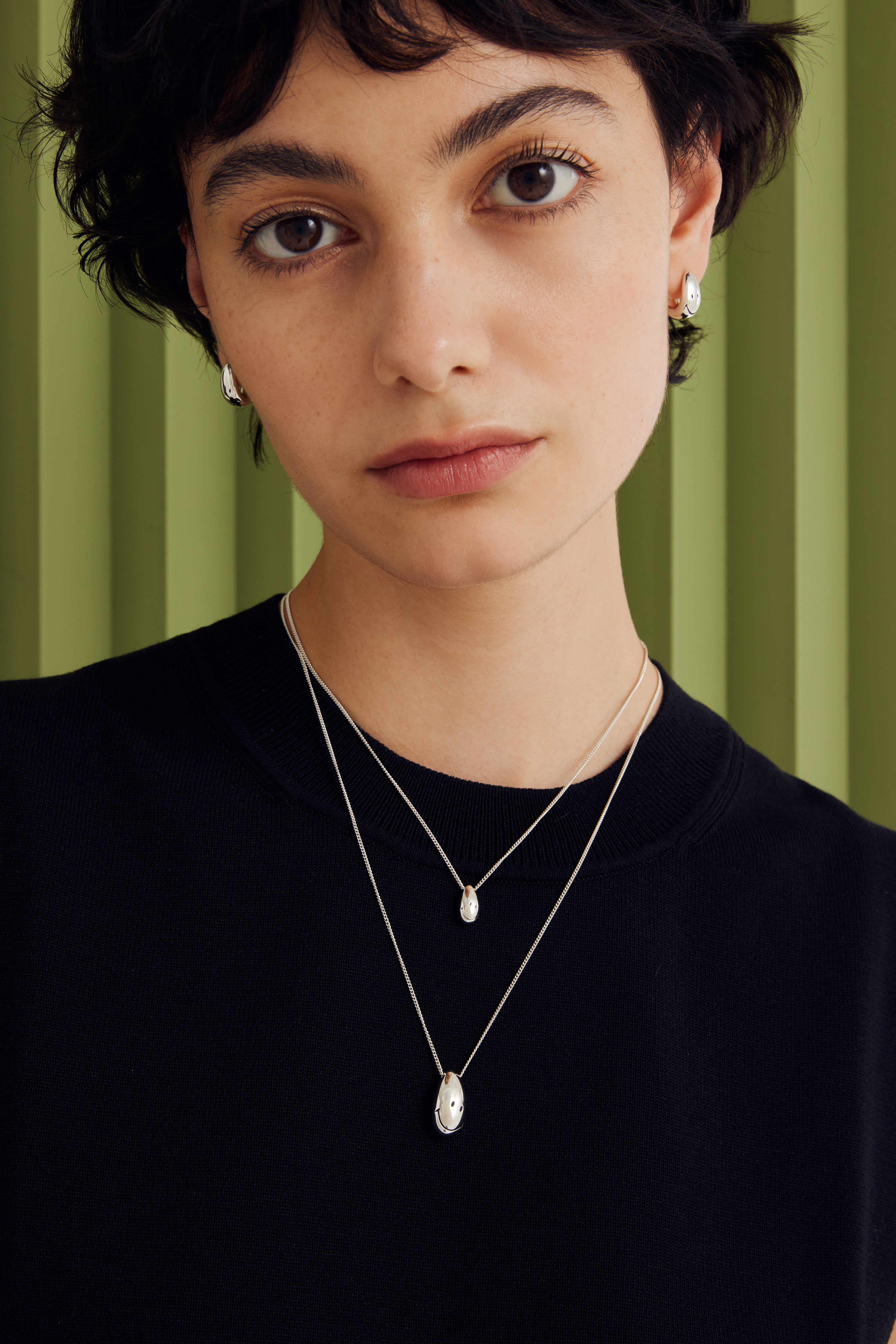 The teardrop shape gives this necklace such a soft, elegant vibe. Love the engraved smiley detail.