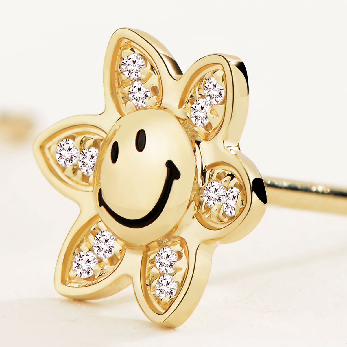 A playful twist on timeless elegance, where minimalist luxury meets the iconic SMILEY® symbol. Featuring antique Smiley details in solid 18K gold with sparkling diamonds, these earrings bring a touch of joy and sophistication to your everyday look.