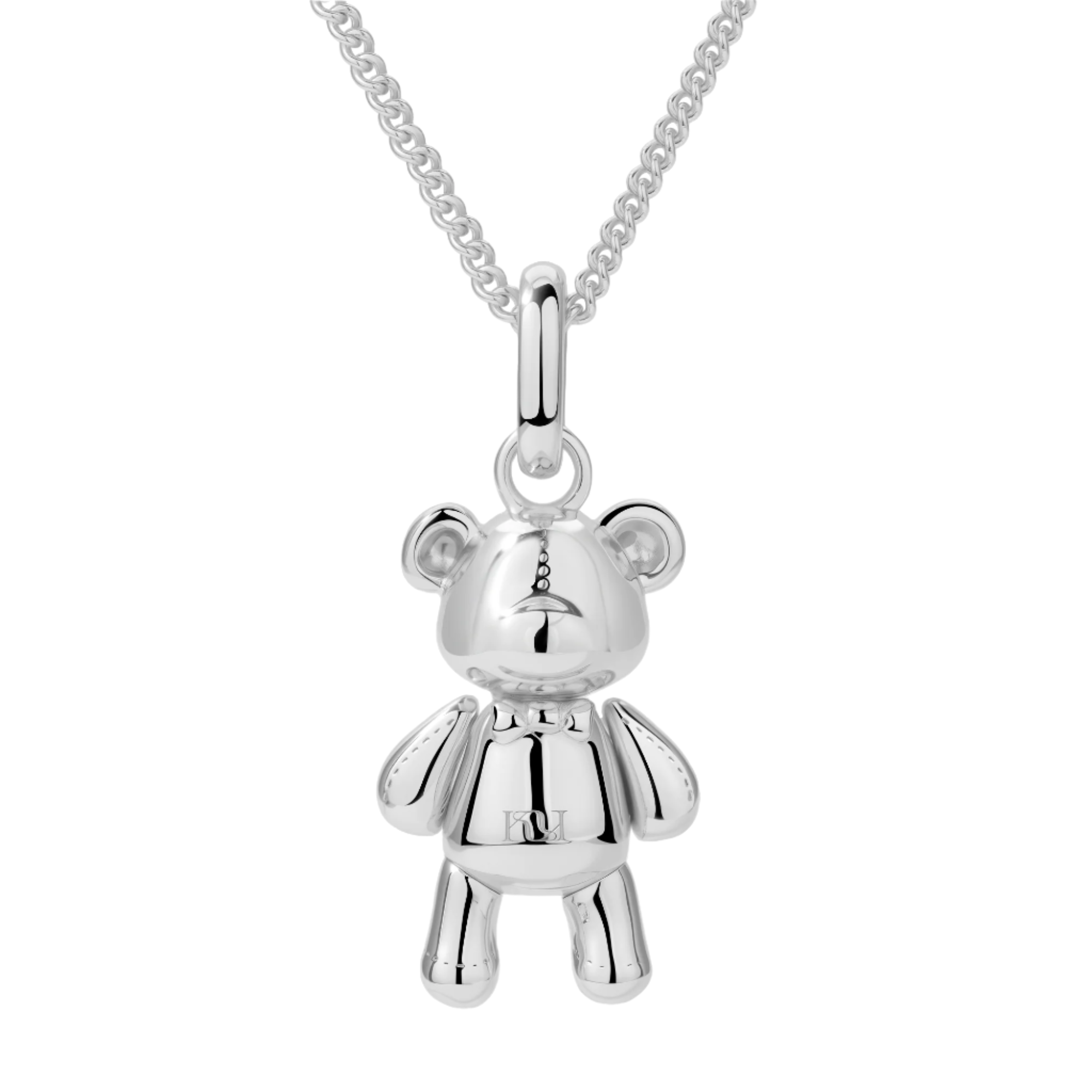 A timeless companion reimagined in sterling silver. The Teddy Silver Bear Necklace features a fully sculpted teddy bear pendant—softly rounded, detailed in form, and full of heart. With its gentle expression and nostalgic charm, this piece captures the warmth of childhood while making a thoughtful everyday statement.