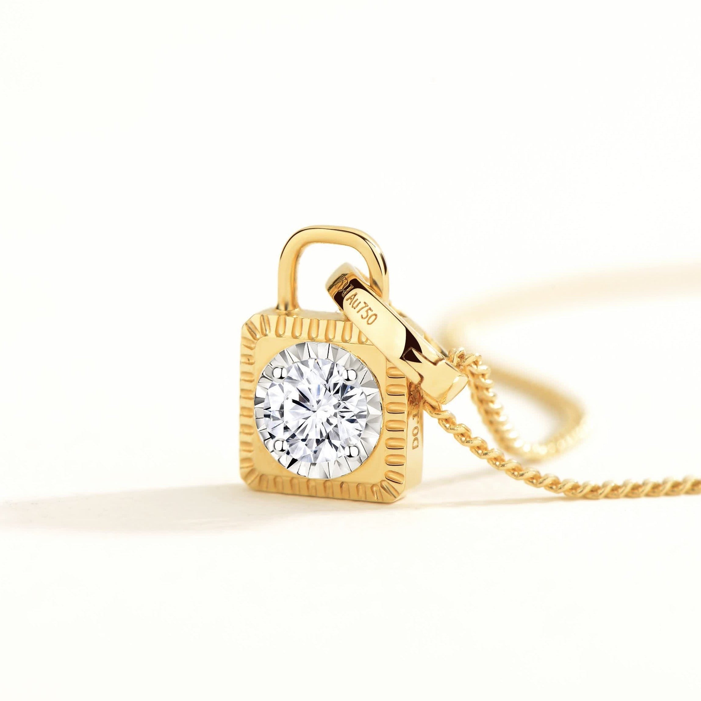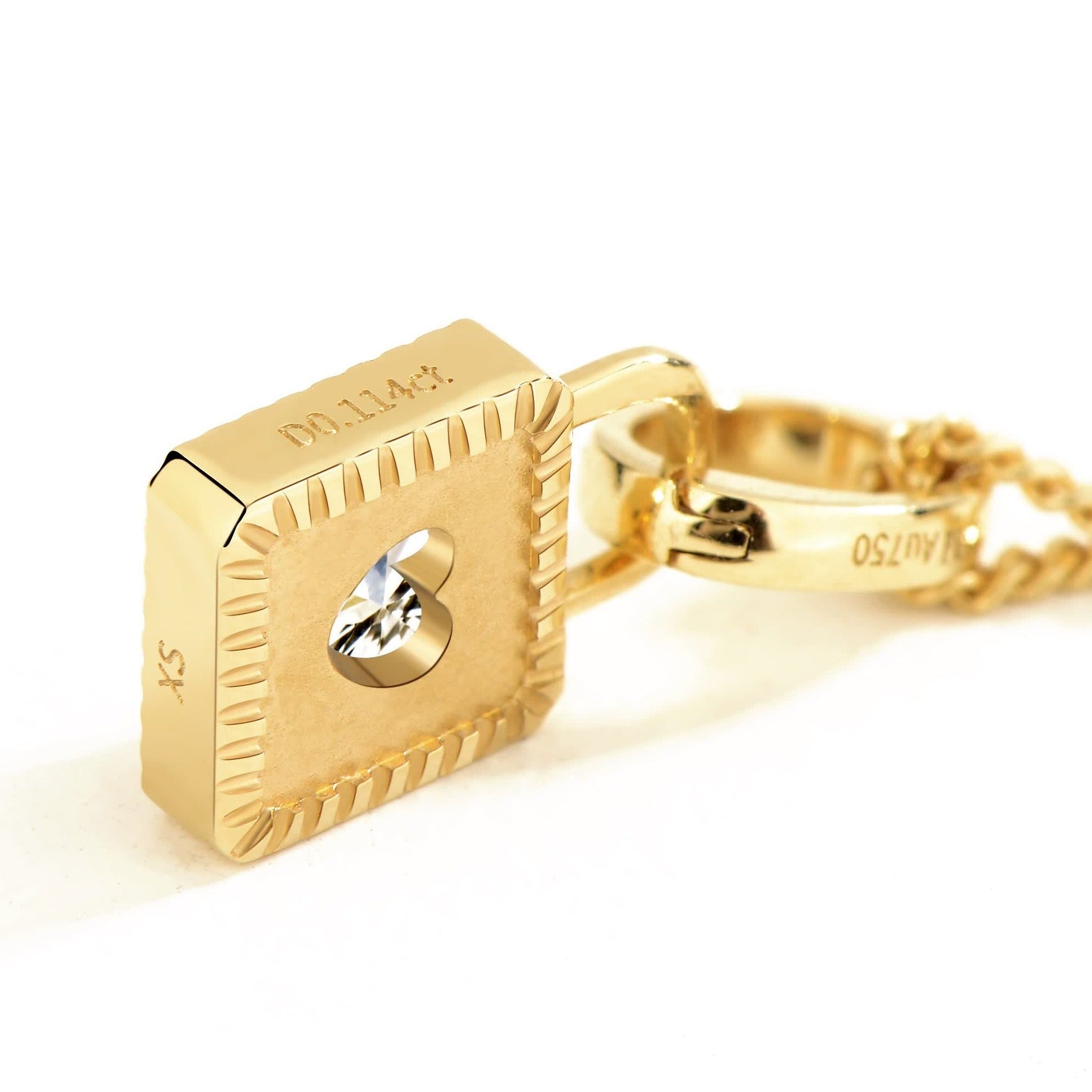 Introducing the Unlock Amulet Collection, a refined evolution of the Unlock Classic Collection. Designed to harness the energy of natural elements, this pendant features a delicate lock motif symbolizing protection, strength, and resilience. Set with a brilliant 0.1ct diamond, this elegant piece is a perfect blend of luxury and meaning. Crafted from solid 18K gold, this versatile pendant allows for customization in color to suit your personal style.