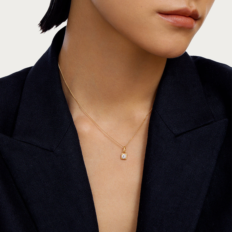 The lock pendant is so beautiful and the diamond makes it even more special. I wear it almost every day.